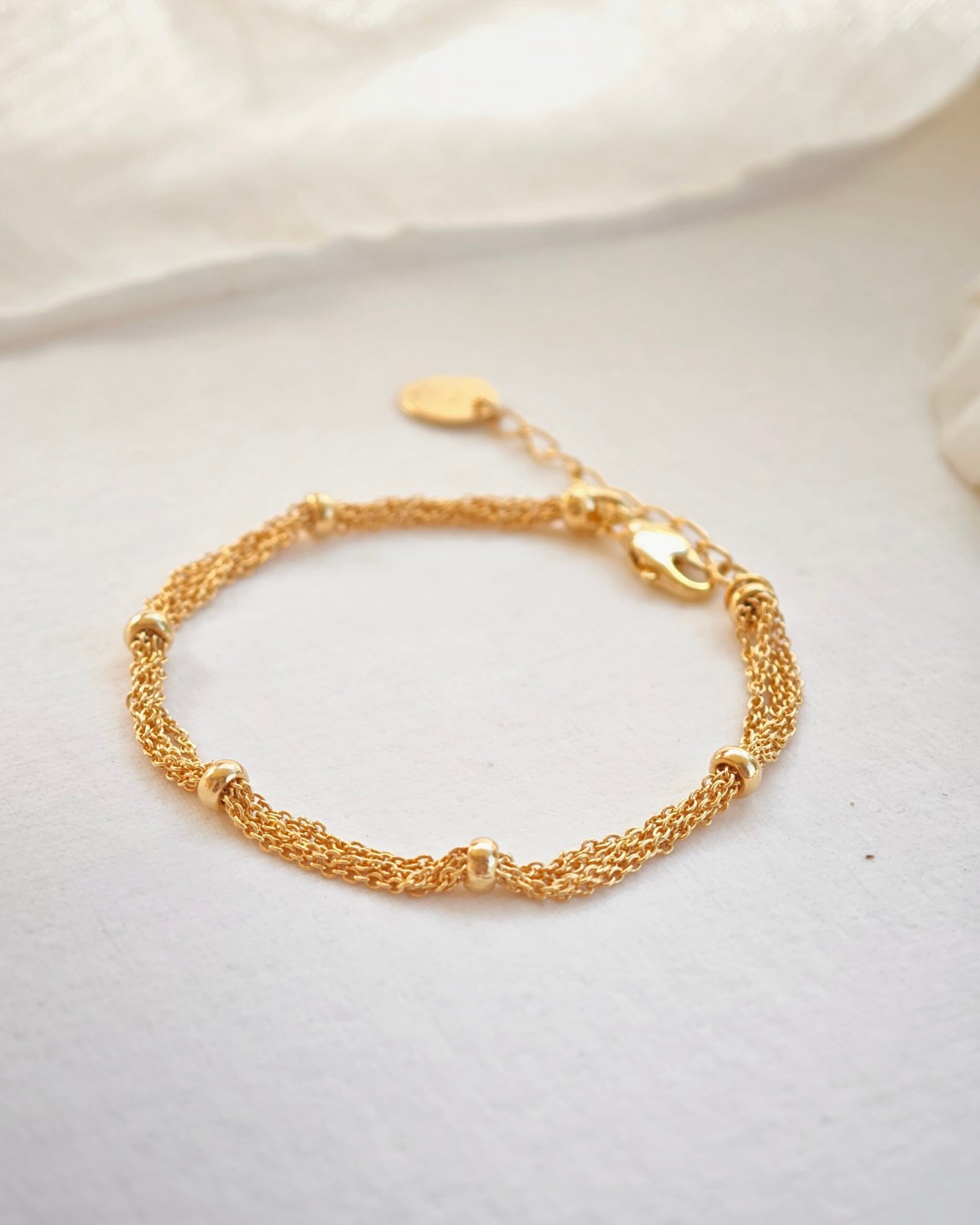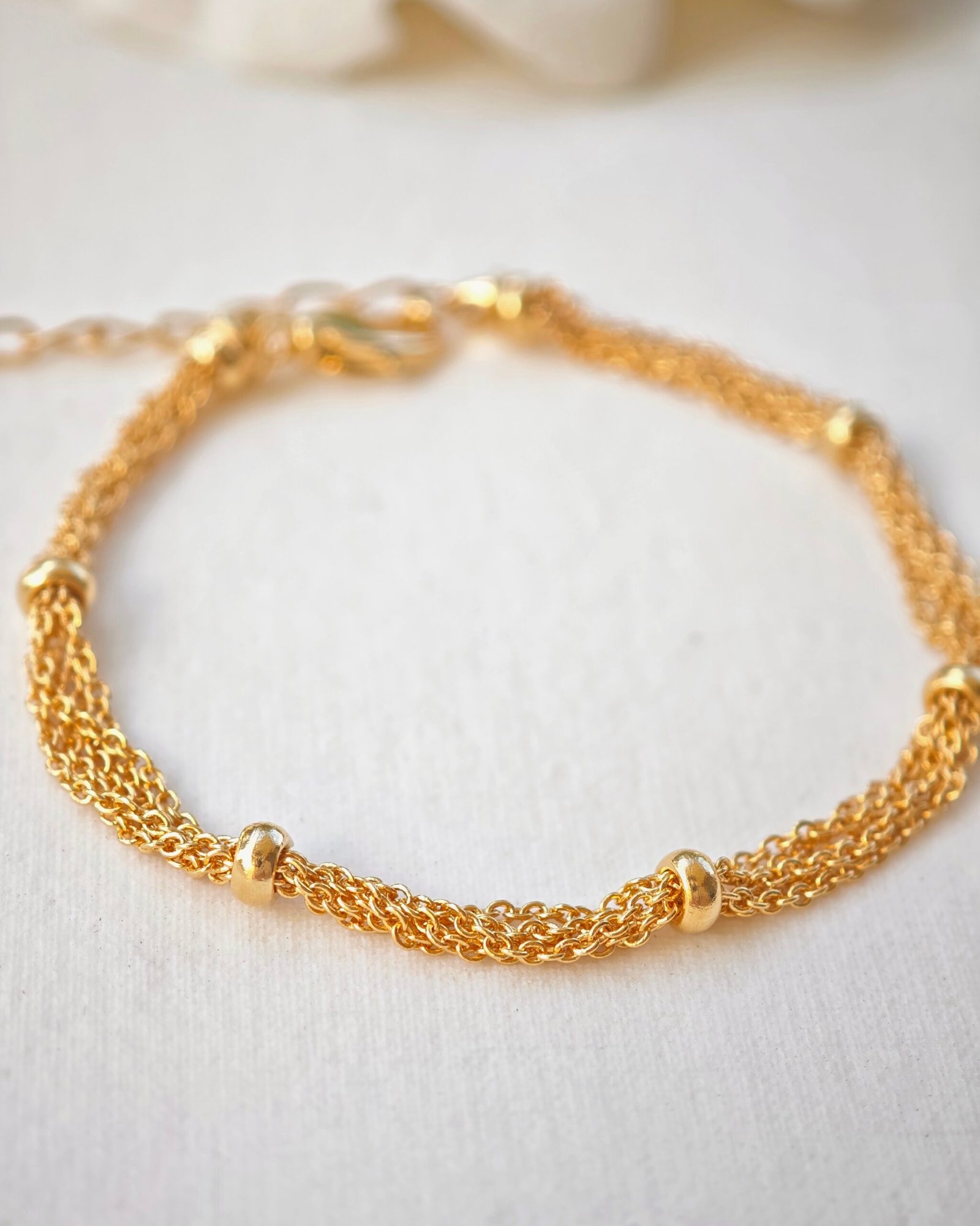 Une chaîne épaisse ornée de perles en plaqué d’or, fusionnant robustesse et élégance dans un bijou qui attire tous les regards. Plaqué or 3 microns sur une base en laiton.