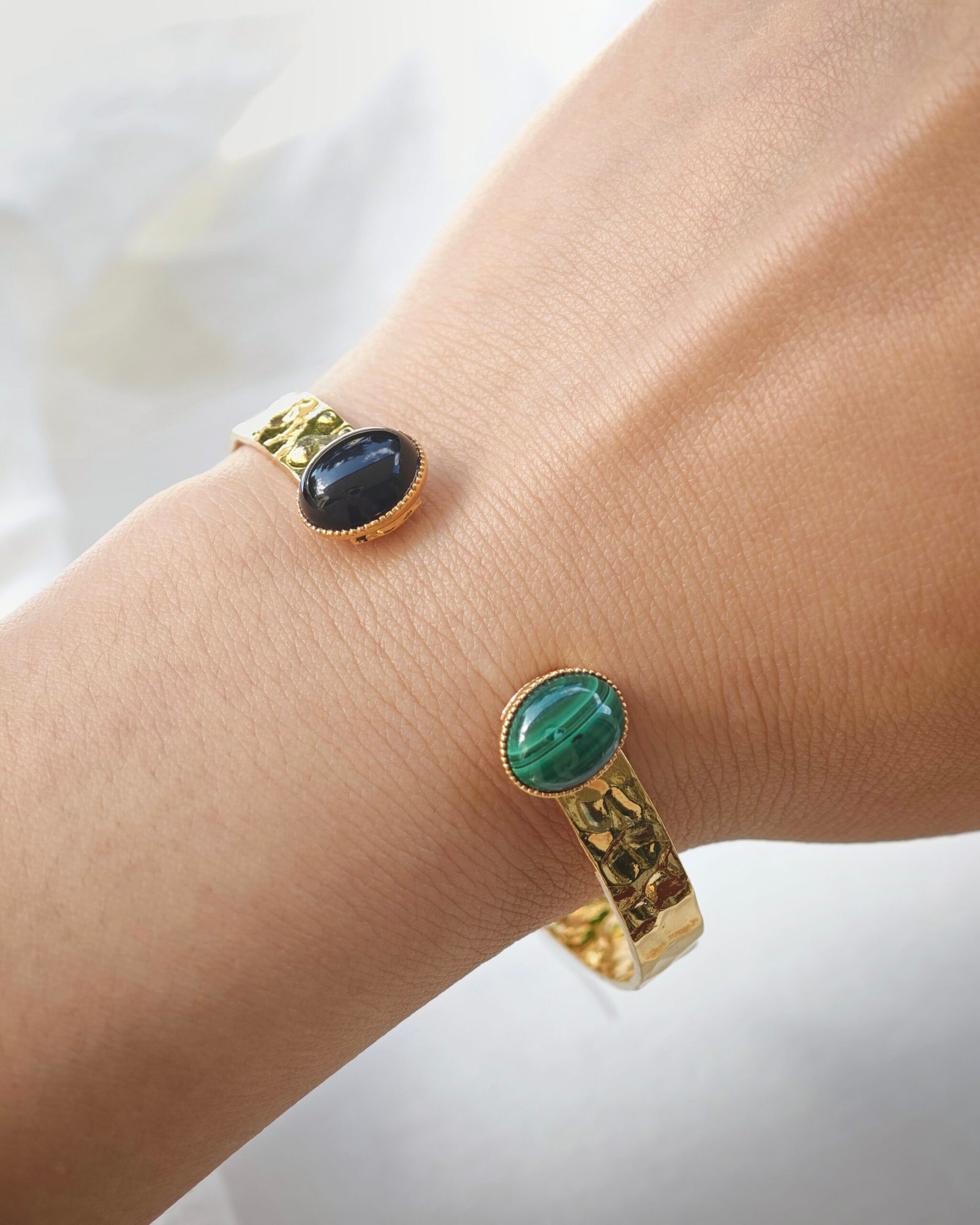 Sublimez votre poignet avec ce magnifique jonc orné de 2 pierres précieuses aux extrémités